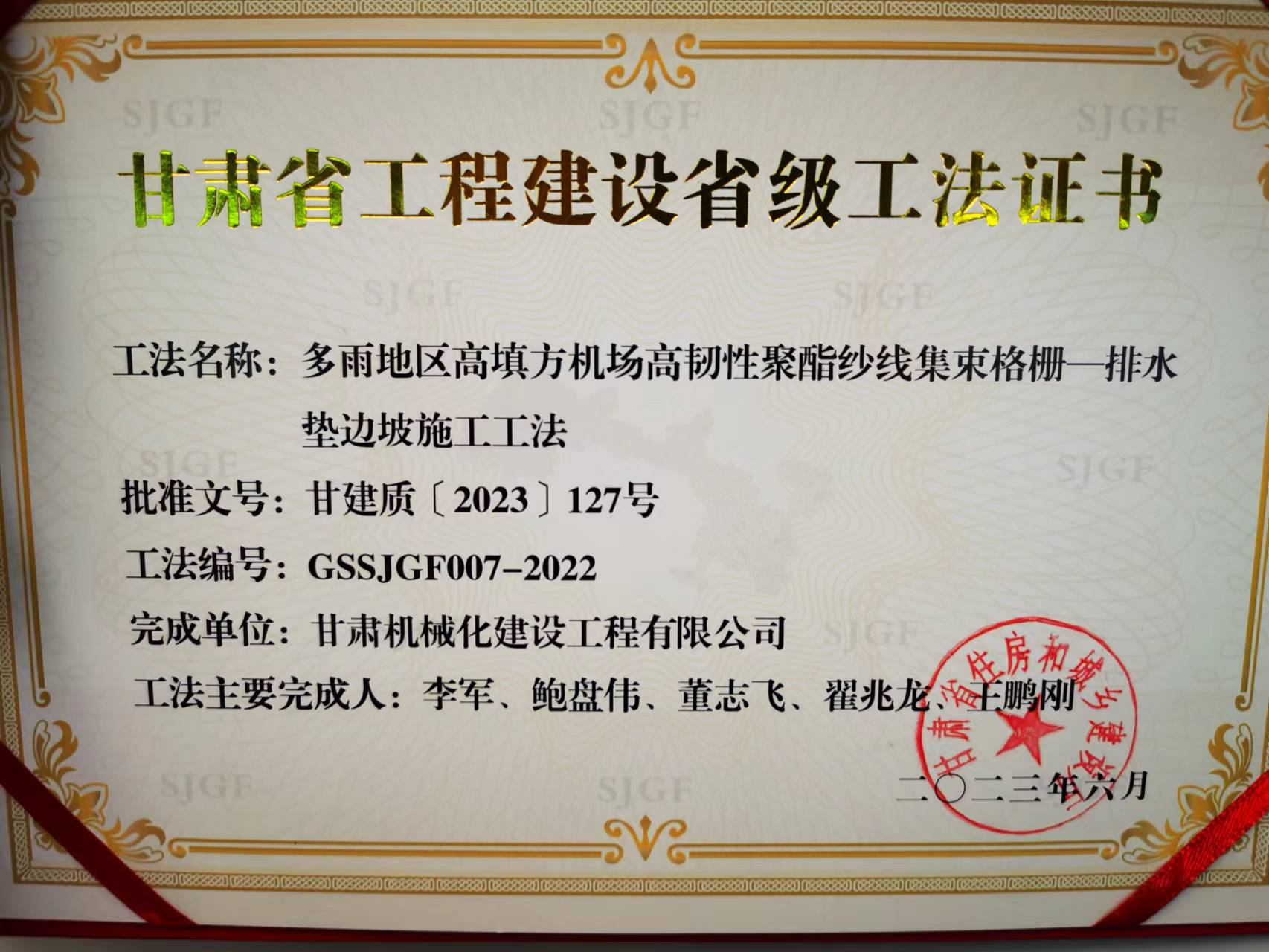 近日,甘肅省住房和城鄉(xiāng)建設(shè)廳頒發(fā)省級(jí)工法證書,我司獲得省級(jí)工法榮譽(yù)。